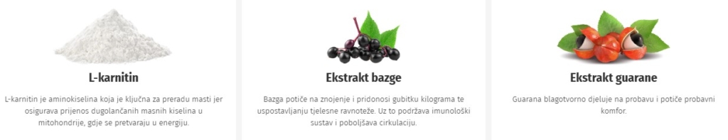 - L-karnitin – prirodni sastojak koji ubrzava sagorijevanje masnoća i pretvara ih u dodatnu energiju.